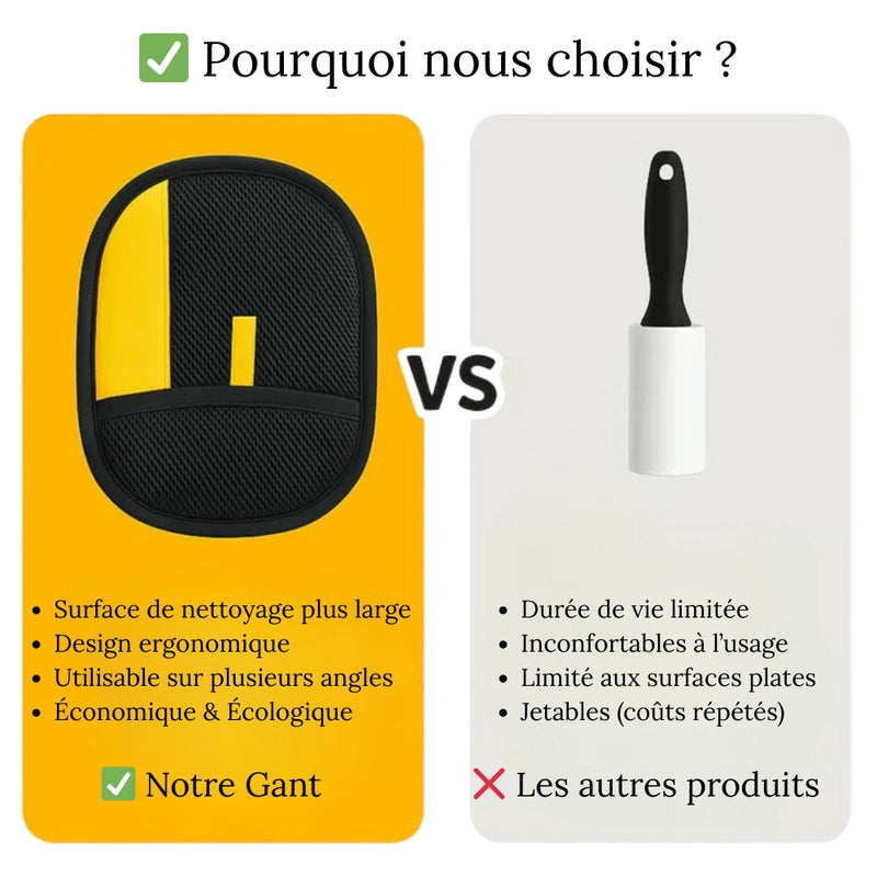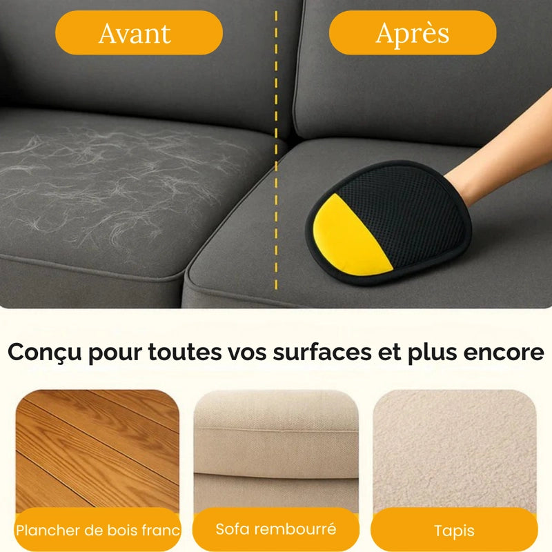 Dites adieu aux poils ! Ce gant retient efficacement chaque poil, pour un intérieur toujours propre et soigné, même lorsque le temps vous manque.